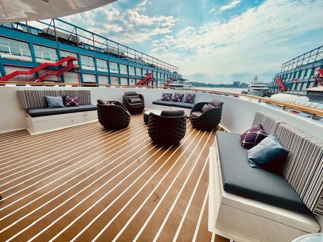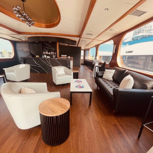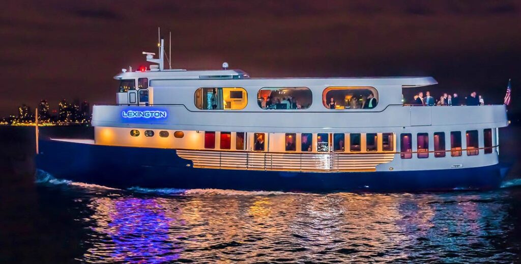 Lexington is a classic climate-controlled private yacht that offers modern conveniences and features a spacious outside deck space. With floor to ceiling windows your guests will enjoy panoramic views as they dine and dance in elegant comfort.
