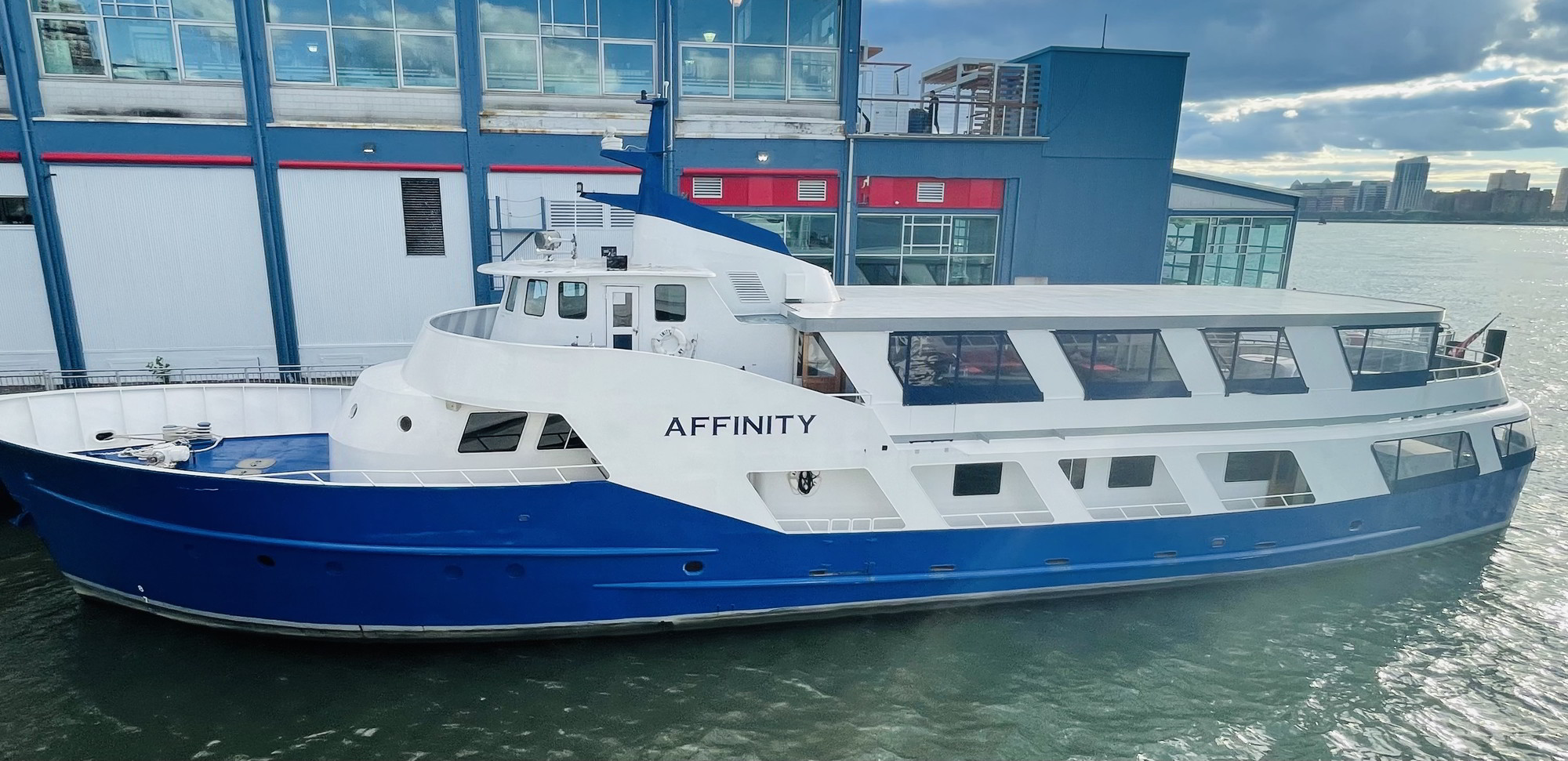 Metro Yacht Charters’ Affinity was built as a private yacht in 1967 for the owner of a southern shipyard and the family enjoyed years of cruising in the Gulf of Mexico. She is a classic steel hulled yacht with two decks, featuring wonderful amenities and is the perfect choice for a casual NYC harbor cruise. There is plenty of open air space on both decks and the Eisen glass Yacht Window System can be unzipped on the Upper Deck!
