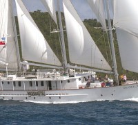 Arabella is a stunning 157 foot mega yacht. She features three masts with a staysail schooner rigging. She has teak decks, a Jacuzzi, cushioned sun deck as well as a covered aft veranda. Her main salon is spacious and can offer a seated dinner for up to 48 guests. The salon also features a beautiful varnished mahogany bar as well as a buffet station.