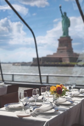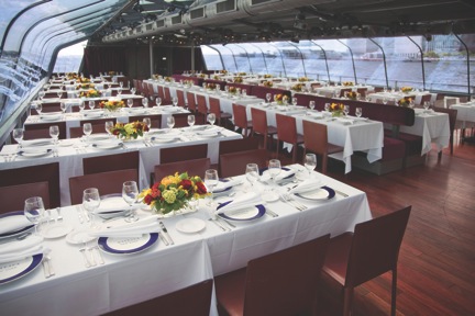 The Bateaux is a 200′ US Coast Guard certified motor yacht with a capacity up to 300. This luxury yacht offers a very unique, modern glass enclosed atrium. The Bateaux is an elegant, architectural design and is great for optimal enjoying the stunning views while cruising the NY Harbor.