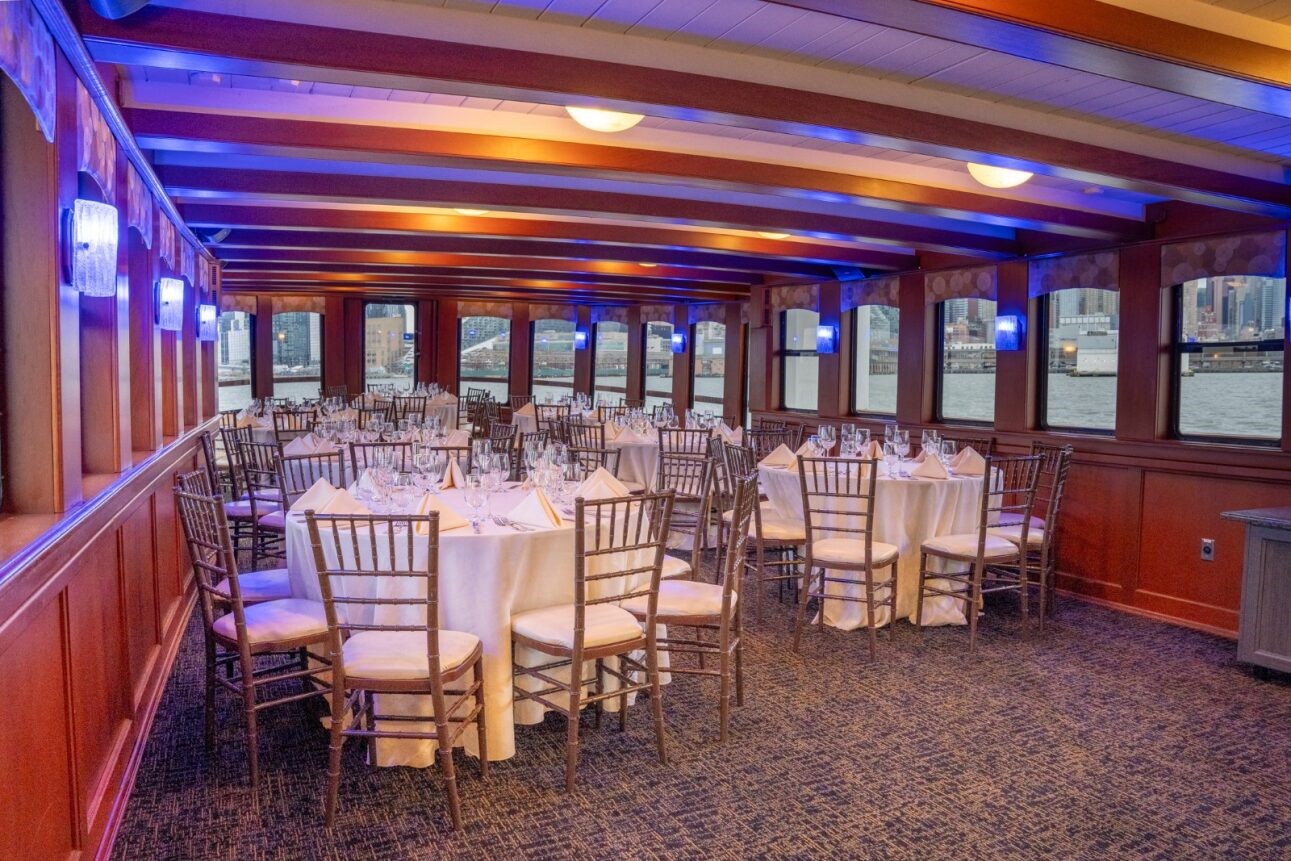 Lexington is a classic climate-controlled private yacht that offers modern conveniences and features a spacious outside deck space. With floor to ceiling windows your guests will enjoy panoramic views as they dine and dance in elegant comfort.